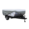 PolyPRO sides reduce wind stress and vent inside moisture. Adjustable front and rear tension panels and elasticized hem corners provide a custom fit. Integrated rope attachment system and a provided toss bag helps reduce crawling under the RV. Zippered panels allow access to the RV doors and engine areas. Stuff sacks are included on all covers. Ladder caps are included.3 Year Warranty. Fits Folding Camping Trailers up to 8'.