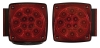 Waterproof LED trailer light set. Includes two universal combination tail lights and mounting hardware. Passenger side is 6 function stop, turn, tail, rear reflex, side marker, and side reflex; 7 function driver side light includes license plate illuminator as well.