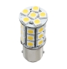 Wide voltage range 8-30 Volt DC. Applications include 12 or 24 VDC auto, marine, RV, and military vehicles. 27 high power 5050 SMD LEDs. Beam pattern 360 degrees. Luminous flux 250 lumens. 3.24 Watts. Color temp 3000-3500K warm white. Replaces automotive bulb numbers BA15S T25 T-25 20-99 1073 1093 1129 1141 1147 1156 1159 1259 1295 1383 1459 1619 1651 1680 2056 3496 5007 5008 7008 7506 7806 7527 1759 3497.
